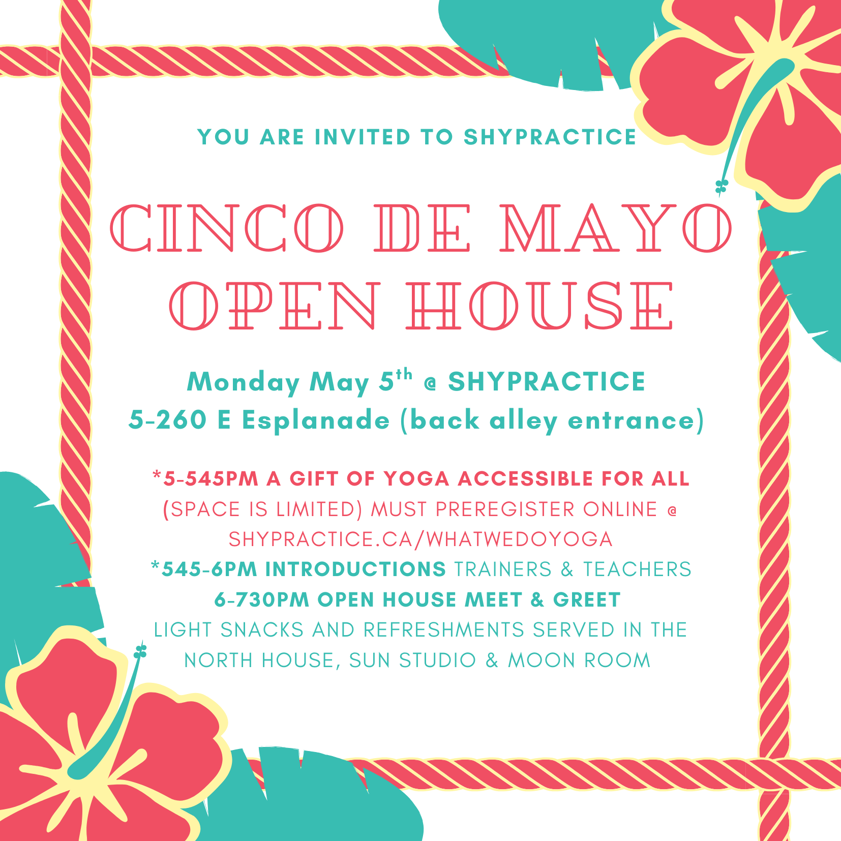 Cinco de Mayo Open House Gift of Yoga Join us on Monday May 5th for a gift of yoga Register SHYpracticeMay 5, 2025 Facebook0 Twitter 0 Likes
